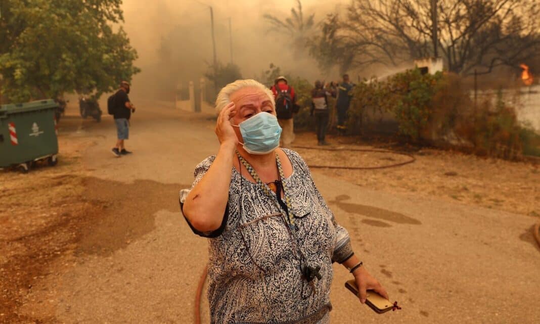 Αυτές οι εικόνες του Γιάννη Λιάκου για το πρακτορείο InTime δείχνουν την απόγνωση των κατοίκων στην περιοχή που έχει παραδοθεί στις φλόγες