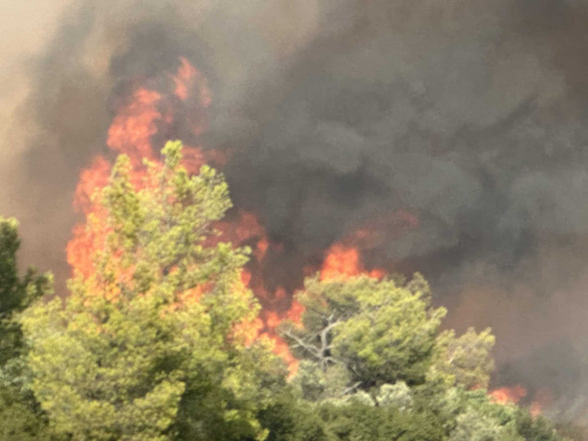 Σημειώνει πως λίγο νωρίτερα με πρωτοβουλία της αυτοδιοίκησης εκκενώθηκε ο οικισμός Πουρνάρι και Νέα Ζωή καθώς οι φλόγες από τις παρυφές της Μάνδρας, όπου ήταν τα ξημερώματα, «με τη βοήθεια του ισχυρού ανέμου καθώς και του πευκώδους και χορτολιβαδικού χαρακτήρα της βλάστησης πέρασαν το ύψωμα- οικισμό Άγ.Σωτήρα με φορά προς τη Ν. Ζωή και στη συνέχεια προς τη Μάνδρα» και απευθύνει έκκληση να αποσταλούν άμεσα εναέρια μέσα για την αντιμετώπιση της πυρκαγιάς που εξαπλώνεται ταχύτατα.