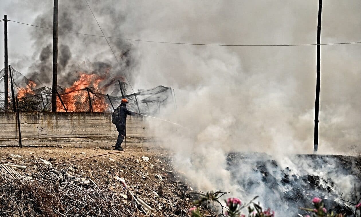 Αν και η εγκατάσταση της Motor Oil δεν κινδυνεύει, οι δυνάμεις δίνουν «μάχη» ώστε η φωτιά να μην πλησιάσει την Εθνική Οδό.