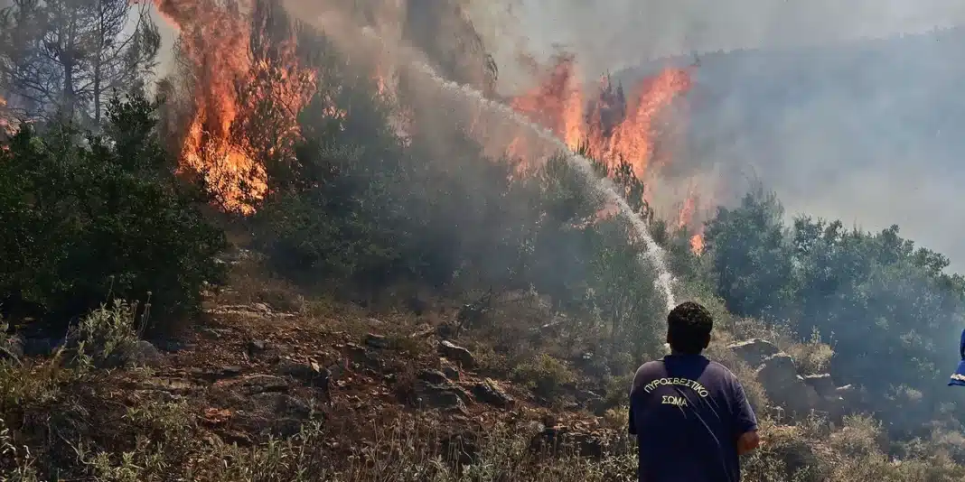 Yunanistan’da sıcak hava dalgası ve kuvvetli rüzgarların da etkisiyle orman yangınları farklı bölgelerde etkili oldu. Yangın söndürme ve soğutma çalışmaları devam ediyor.pic.twitter.com/E3E9Y6j77U