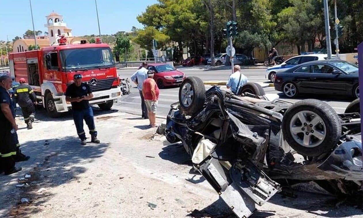 Από τη σύγκρουση, το ένα αυτοκίνητο, ένα τζιπ του ναυτοδικείου του Πολεμικού Ναυτικού, βρέθηκε αναποδογυρισμένο στο απέναντι πεζοδρόμιο.