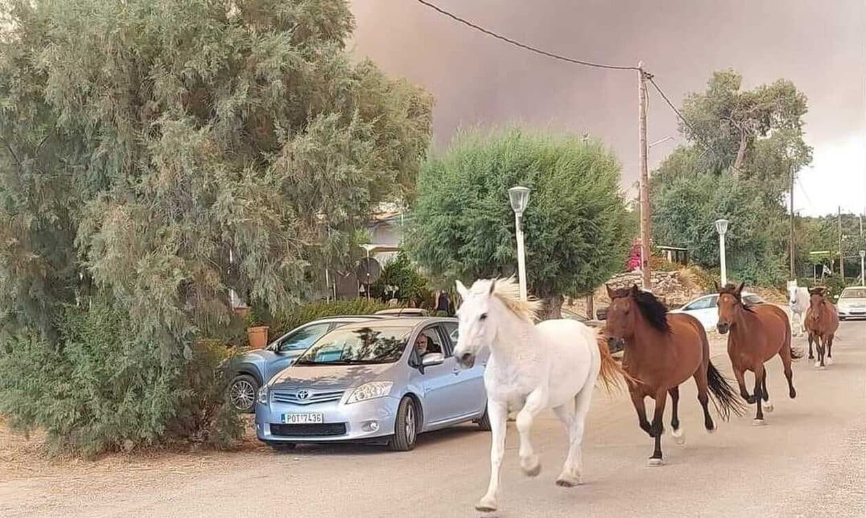 Τον γύρο του διαδικτύου κάνει μία φωτογραφία με πέντε άλογα που τρέχουν στους δρόμους του νησιού προκειμένου να σωθούν από τη φωτιά και σοκάρει.