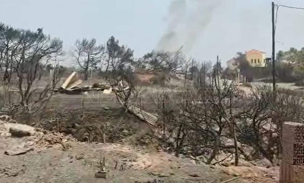 Όπως μπορείτε να δείτε σε βίντεο του Newsbomb.gr όλα έχουν γίνει στάχτη ενώ υπάρχουν και αρκετά σπίτια που παραδόθηκαν στις φλόγες