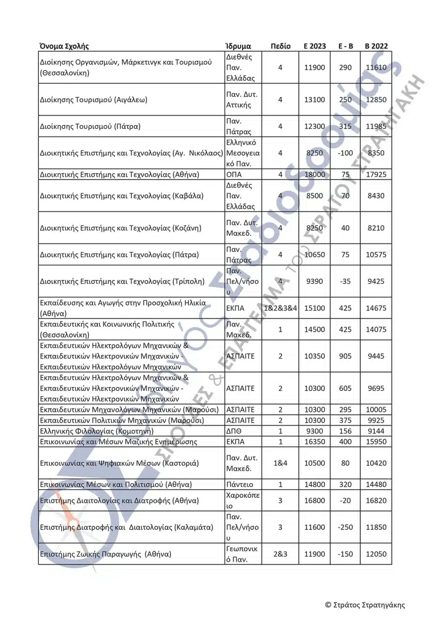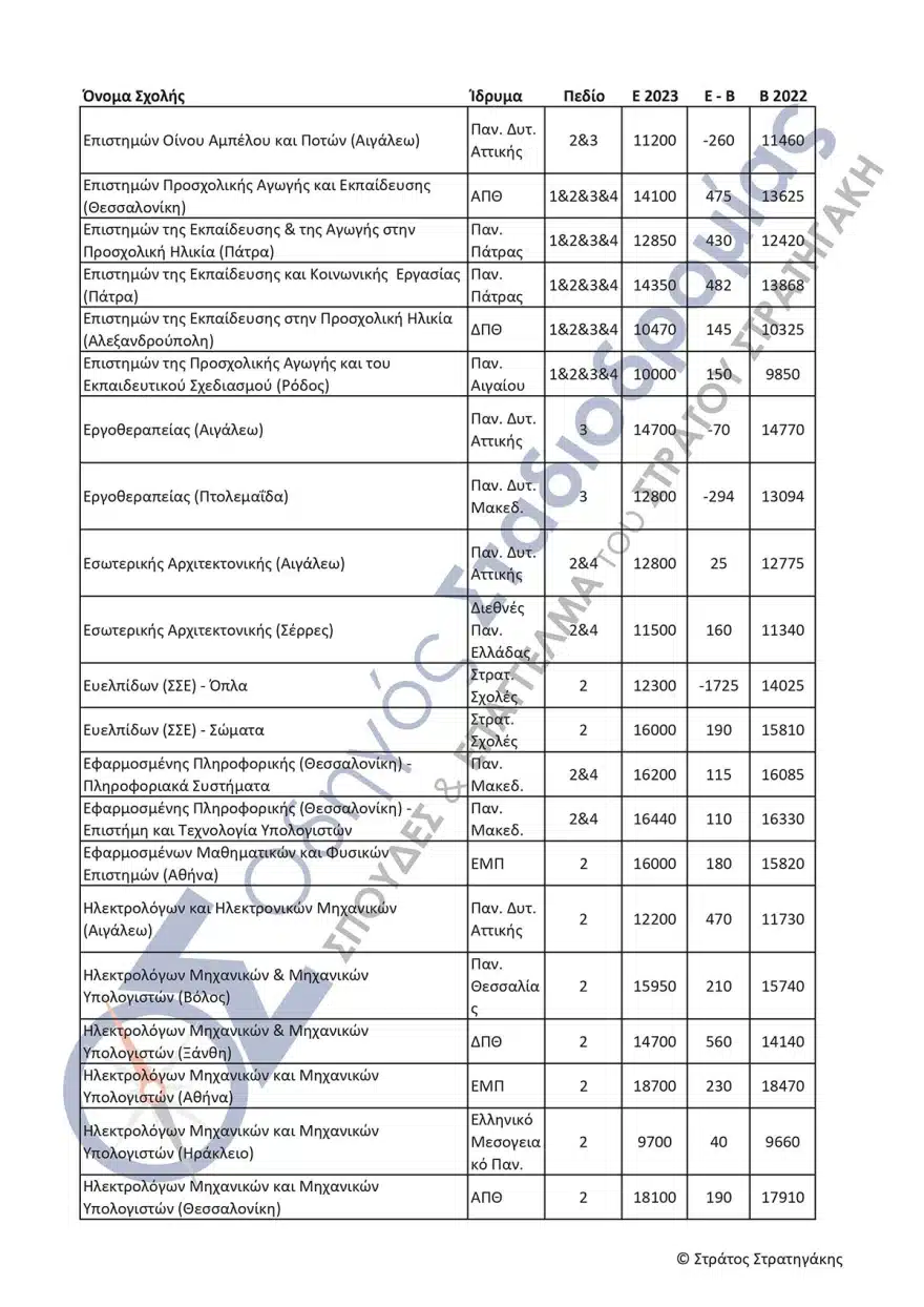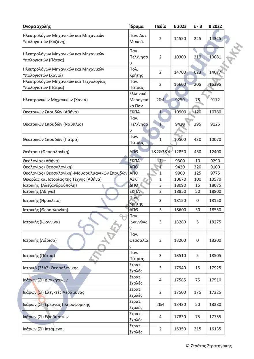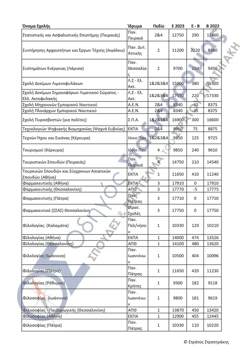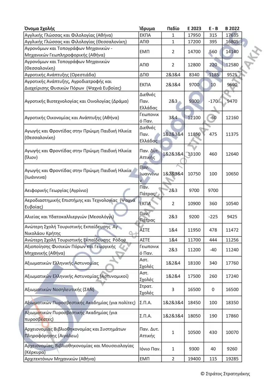 Την ίδια στιγμή, προσθέτει ο Στράτος Στρατηγάκης, «στο 2ο Πεδίο είχαμε καλύτερες επιδόσεις και λιγότερους υποψηφίους. Περιμένουμε άνοδο στις υψηλόβαθμες σχολές, πτώση στις χαμηλόβαθμες και εκατοντάδες κενές θέσεις, λόγω της ΕΒΕ και της έλλειψης υποψηφίων. Στο 3ο Πεδίο αναμένουμε πολύ μικρή άνοδο στις υψηλόβαθμες σχολές, σταθερές βάσεις στις μεσαίες σχολές και πτώση στις χαμηλόβαθμες».