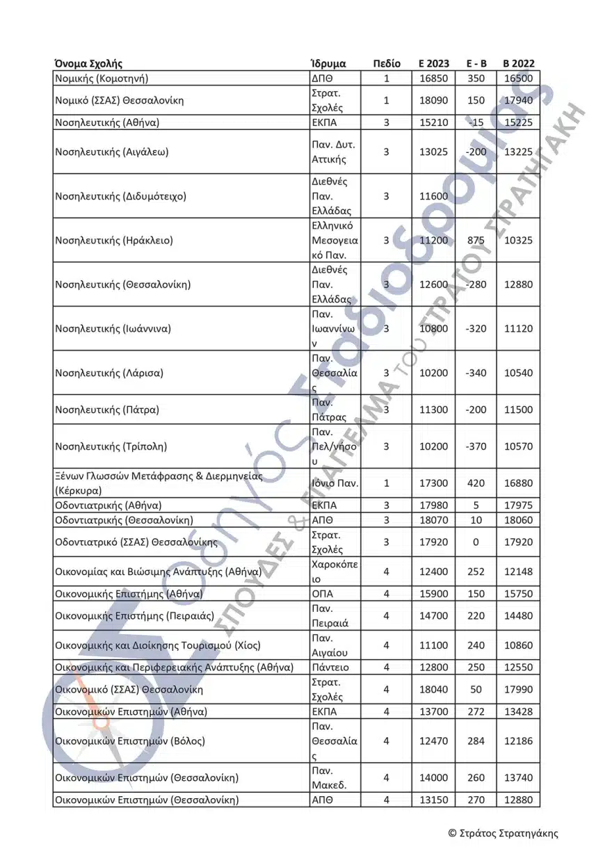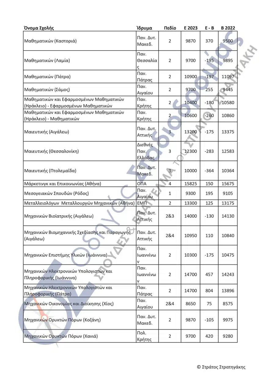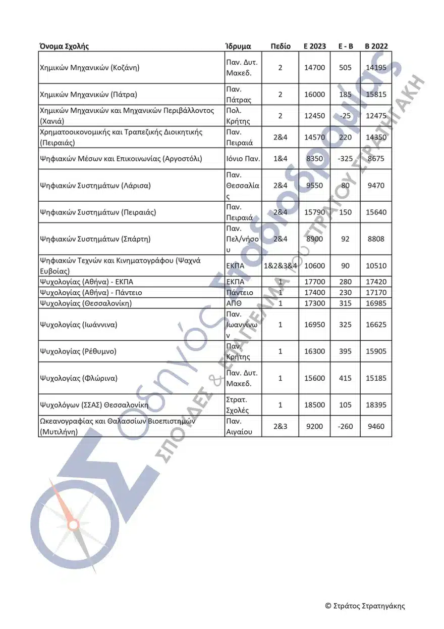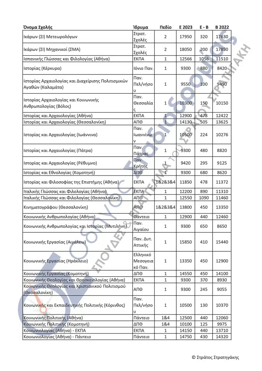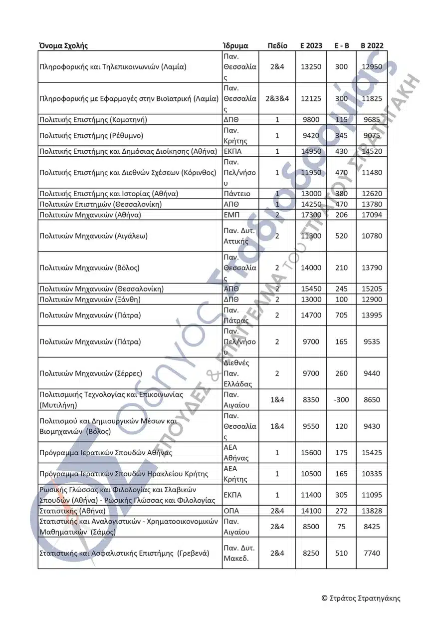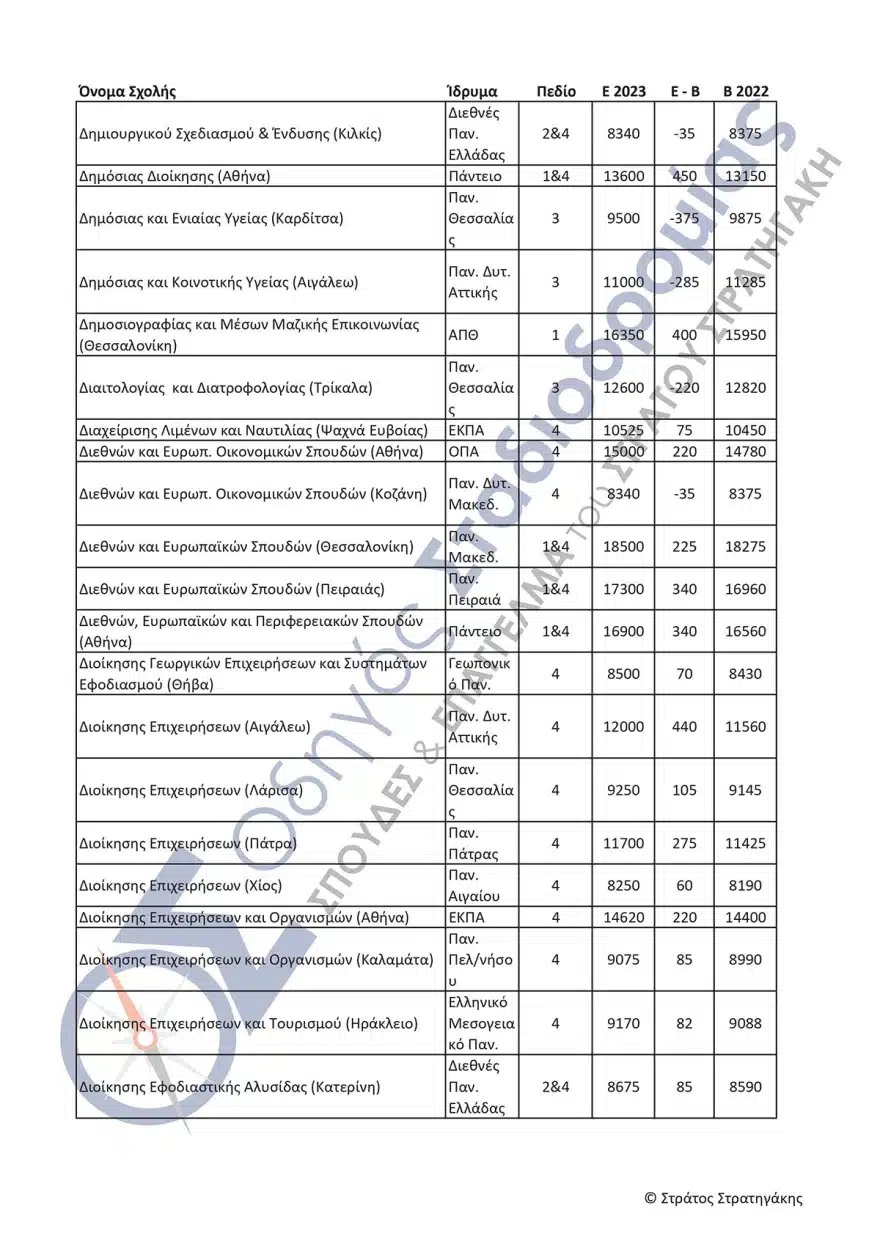 Την ίδια στιγμή, προσθέτει ο Στράτος Στρατηγάκης, «στο 2ο Πεδίο είχαμε καλύτερες επιδόσεις και λιγότερους υποψηφίους. Περιμένουμε άνοδο στις υψηλόβαθμες σχολές, πτώση στις χαμηλόβαθμες και εκατοντάδες κενές θέσεις, λόγω της ΕΒΕ και της έλλειψης υποψηφίων. Στο 3ο Πεδίο αναμένουμε πολύ μικρή άνοδο στις υψηλόβαθμες σχολές, σταθερές βάσεις στις μεσαίες σχολές και πτώση στις χαμηλόβαθμες».