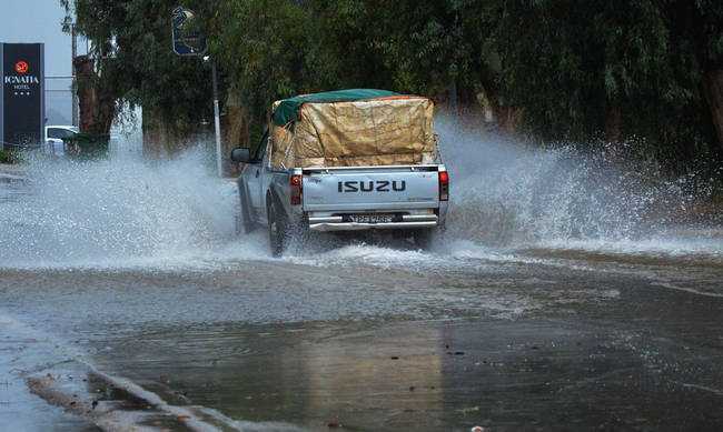 Διακόπηκε, λόγω της κακοκαιρίας «Υπατίας», η κυκλοφορία των οχημάτων στην παλαιά Εθνική οδό Πατρών-Κορίνθου, στο ύψος της γέφυρας του Μεγανίτη, κοντά στο Αίγιο.