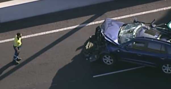 Τεράστια πινακίδα συνθλίβει κινούμενο όχημα σε αυτοκινητόδρομο της Μελβούρνης (vid)