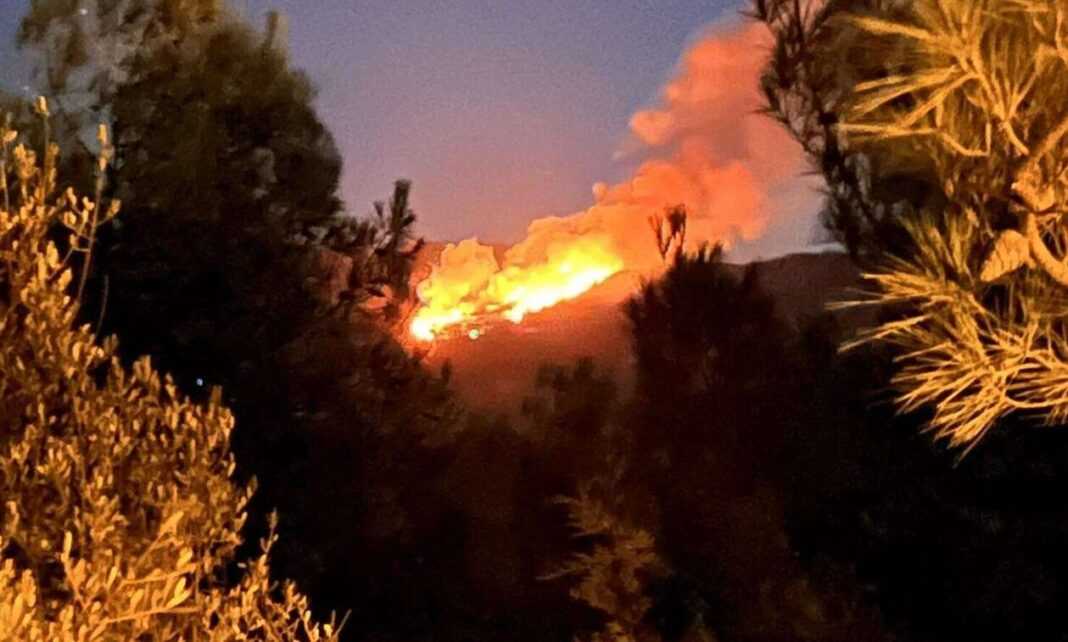 Σημειώνεται ότι η φωτιά δεν απειλεί οικιστικό κομμάτι. Στην περιοχή πνέουν άνεμοι 4-5 μποφορ.