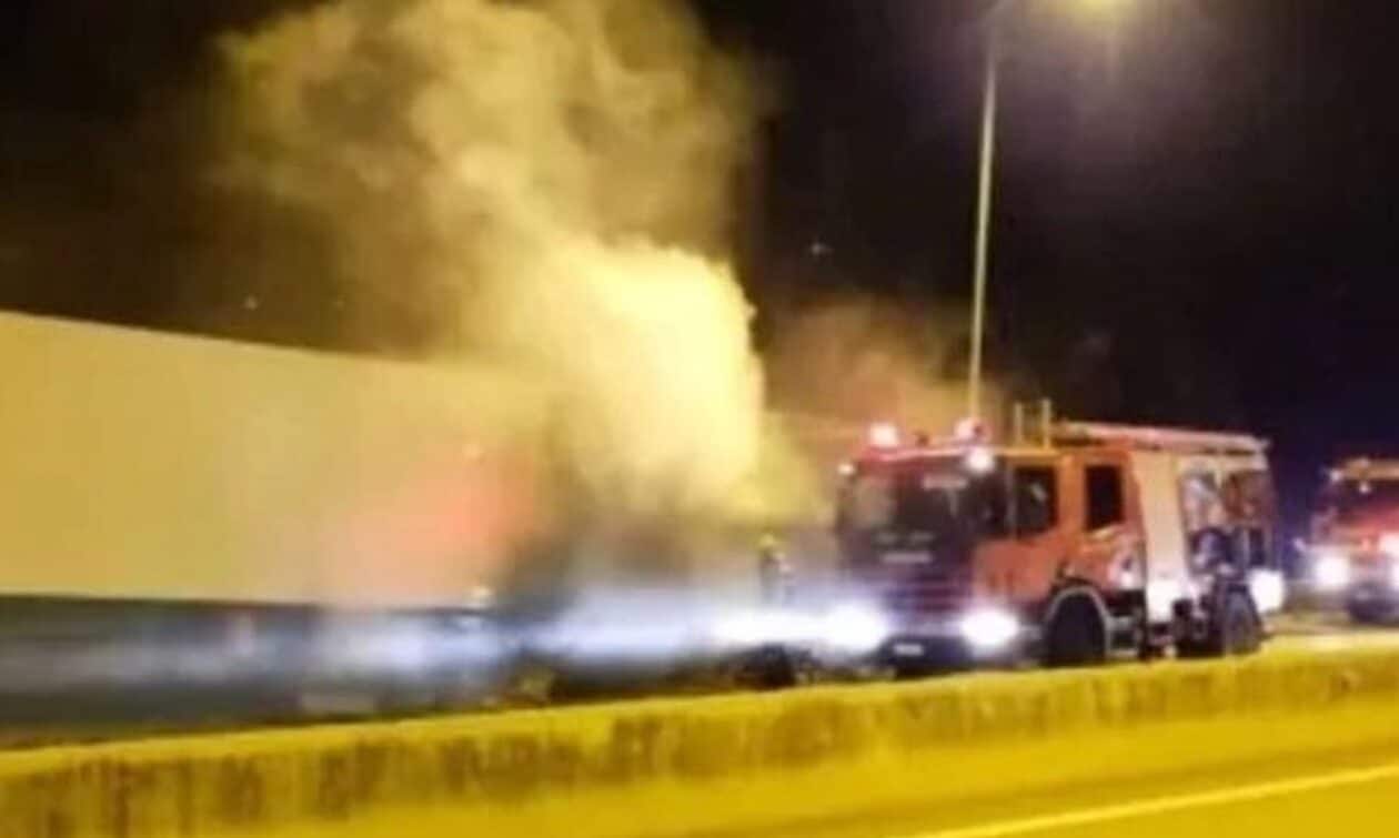 Θεσσαλονίκη: Νταλίκα έγινε παρανάλωμα του πυρός στο Δερβένι – Κάηκαν και χόρτα