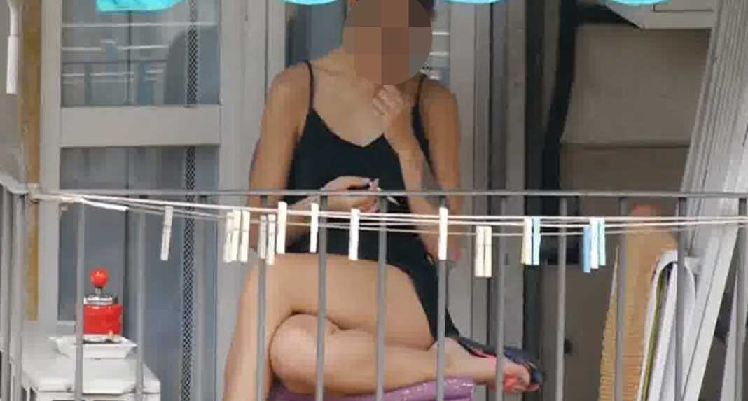 To όμορφο κορίτσι που δεν δείχνει να νοιάζεται για τα αδιάκριτα βλέμματα από τις γύρω πολυκατοικίες, σύμφωνα με πληροφορίες, κατάγεται από άλλη πόλη και μένει στην περιοχή το τελευταίο έτος.