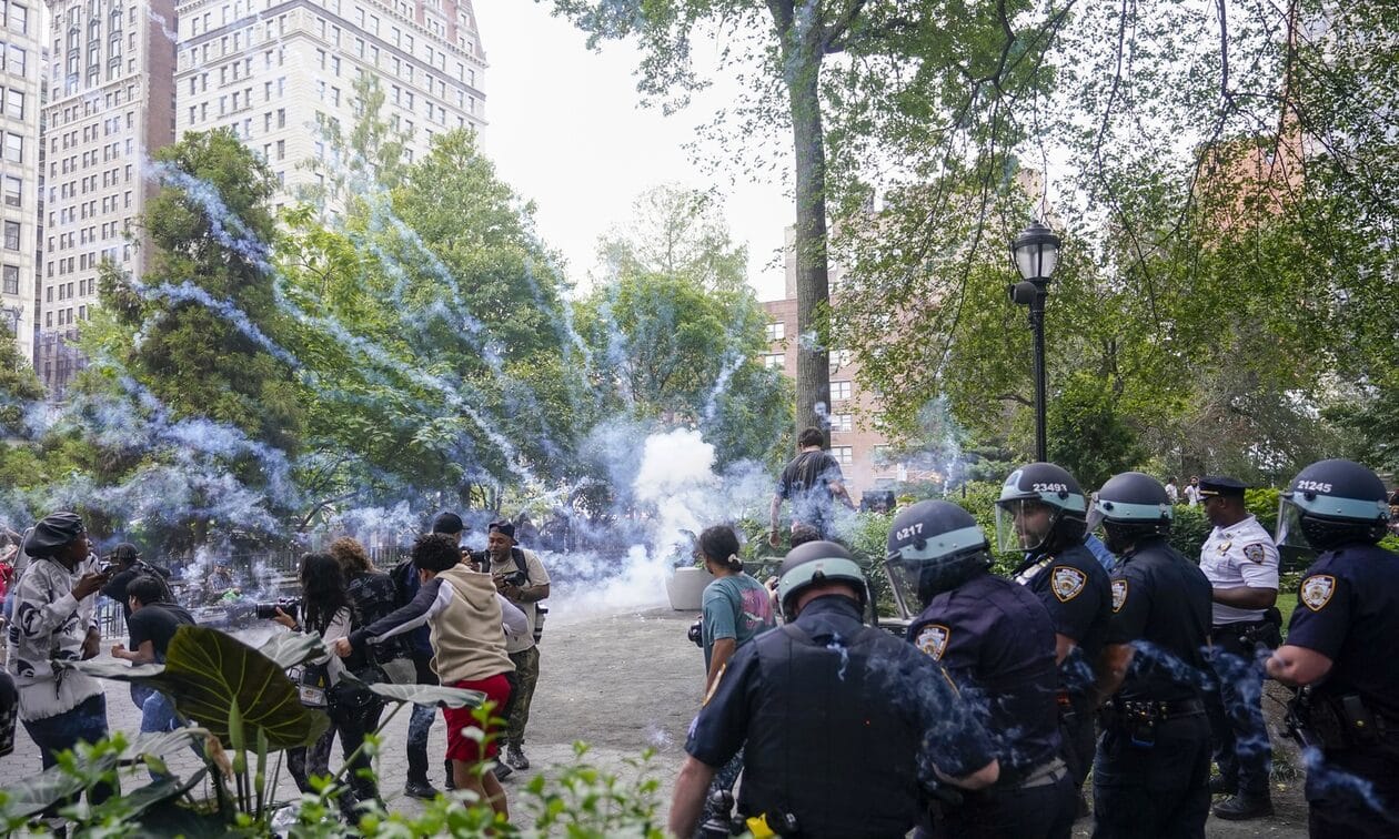 Οι αρχές συνέλαβαν 65 άτομα, εκ των οποίων οι 30 είναι ανήλικοι. Πολλοί αστυνομικοί και πολίτες τραυματίστηκαν στις ταραχές που σημειώθηκαν στο πάρκο της Γιούνιον Σκουέρ, ανέφερε ένας αξιωματικός της αστυνομίας, ο Τζέφρι Μάντρεϊ, σε συνέντευξη Τύπου που παραχώρησε.