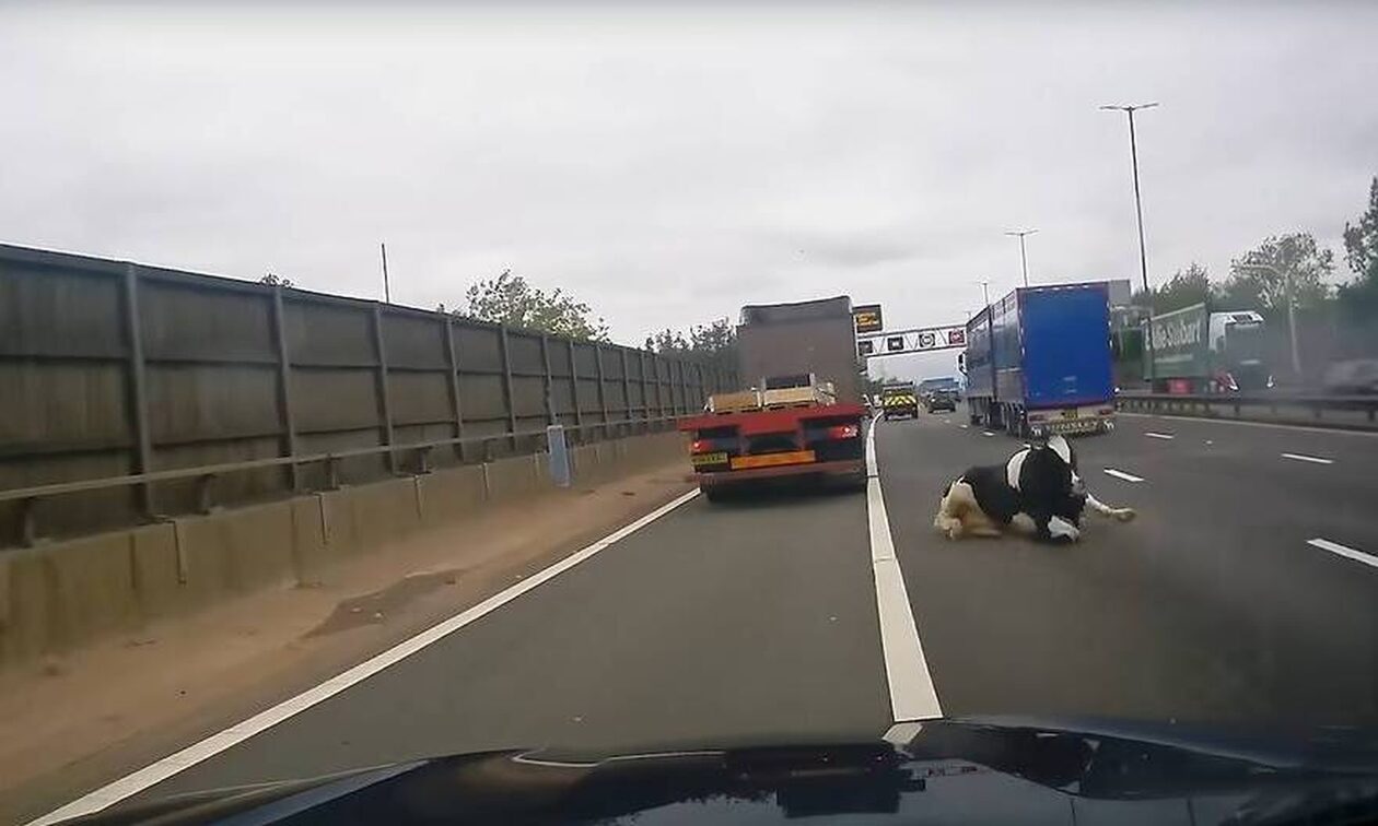 Αποτροπιασμό προκαλεί βίντεο που καταγράφει την πτώση αγελάδας σε αυτοκινητόδρομο ταχείας κυκλοφορίας, στη Μεγάλη Βρετανία. Στο βίντεο, η αγελάδα φαίνεται να πέφτει και να γλιστρά στο οδόστρωμα, αναγκάζοντας τους επερχόμενους οδηγούς να φρενάρουν απότομα και να κάνουν ελιγμούς, προκειμένου να την αποφύγουν.