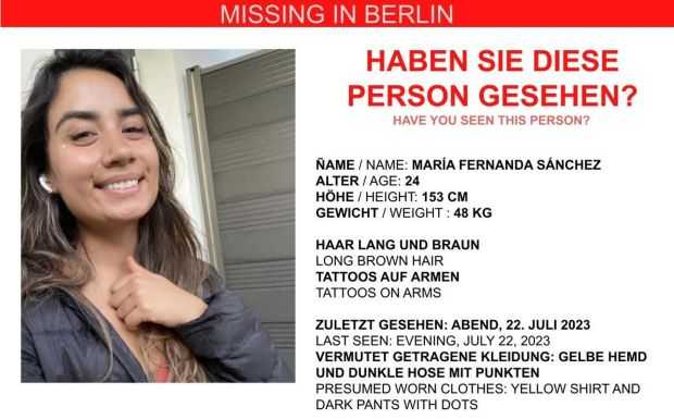 Μέσα σε ένα κανάλι στο Βερολίνο εντοπίστηκε το πτώμα της 24χρονης μεξικανής φοιτήτριας, Μαρία Φερνάντα Σάντσες, που είχε εξαφανιστεί πριν από περίπου δέκα μέρες, ανακοίνωσε χθες Σάββατο το υπουργείο Εξωτερικών του Μεξικού.
