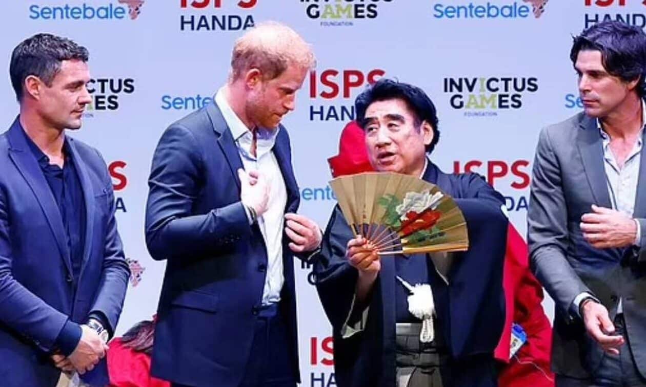 Ο Χάρι – ο οποίος ταξιδεύει χωρίς τη σύζυγό του τη Μέγκαν και τα παιδιά τον Άρτσι και τη Λίλιμπετ, έγινε δεκτός εν μέσω χειροκροτημάτων στο ISPS (International Sports Promotion Society) Sports Values Summit «Special Edition».