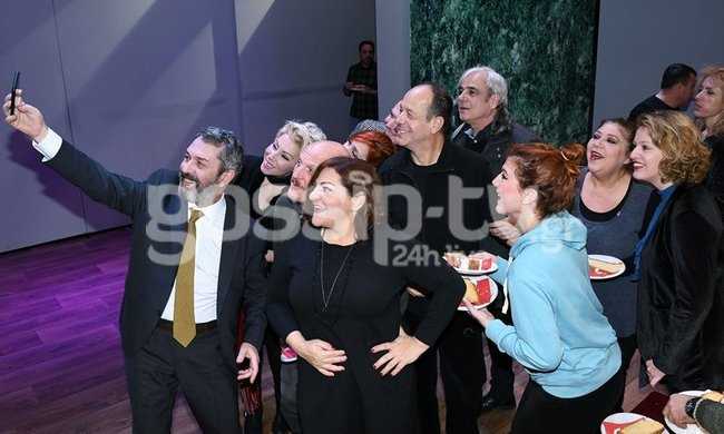 Στο θέατρο Αλίκη συγκεντρώθηκαν οι ηθοποιοί της παράστασης «Πουλιά στον αέρα» για να κόψουν την πίτα.