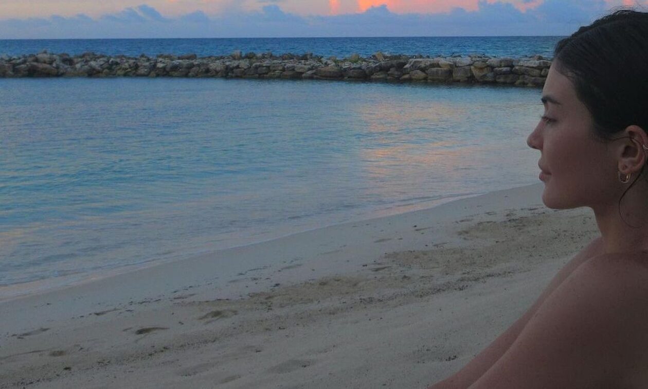 Έδωσε επίσης στους θαυμαστές μια άλλη ματιά στην ομορφιά της φύσης δημοσιεύοντας φωτογραφίες μιας χελώνας και του νυχτερινού ουρανού. Ολοκληρώνει την ανάρτησή της, με μια φωτογραφία της που χαμογελά καθώς κοιτάζει τον ουρανό με τα δάχτυλα των ποδιών της βουτηγμένα στο νερό.