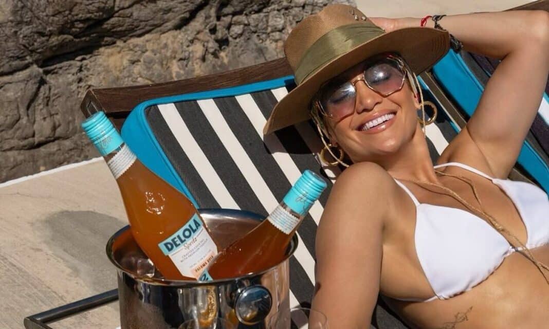 Η Τζένιφερ Λόπεζ με λευκό μπικίνι επιδεικνύει την εντυπωσική σιλουέτα της, ενώ προωθεί τη σειρά με τα οινοπνευματώδη ποτά που φέρει την υπογραφή της.