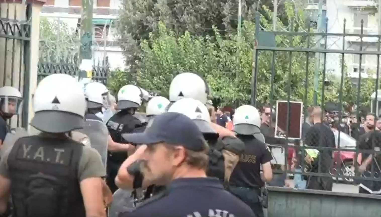 Όπως μετέδωσε ο τηλεοπτικός σταθμός MEGA, ομάδα ατόμων που είχε συγκεντρωθεί στο σημείο πέταξε μπουκάλια με νερό προς το μέρος των αστυνομικών δυνάμεων και των τηλεοπτικών συνεργείων.
