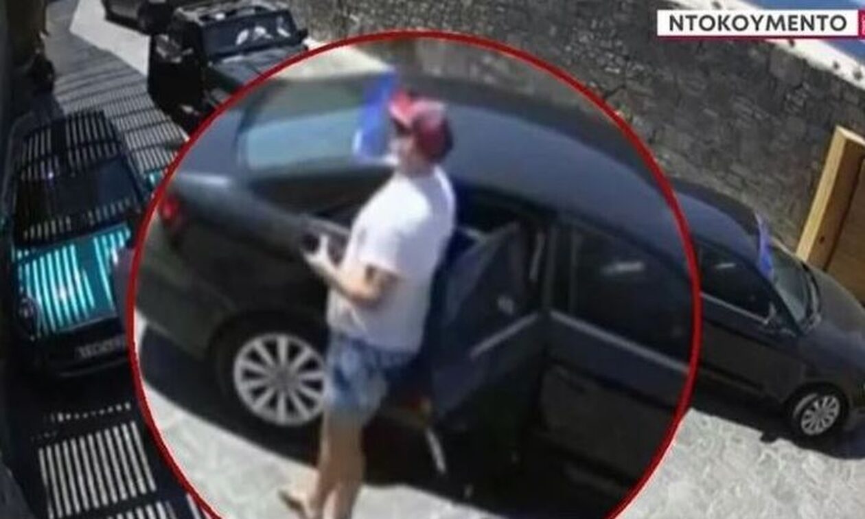 Όπως αποτυπώνεται στο σχετικό βίντεο, η είσοδός του στο δωμάτιο έγινε την 13:24, χωρίς να φέρει αντικείμενα, ενώ κατά την έξοδό του, τρία λεπτά αργότερα (13:27), έχει σακίδιο πλάτης σκούρου χρώματος. Στις 13:50 μετέβη στον χώρο στάθμευσης του ξενοδοχείου και τον παρέλαβε όχημα (τύπου VAN) μεταφοράς τουριστών με κατεύθυνση προς τη Χώρα Μυκόνου.