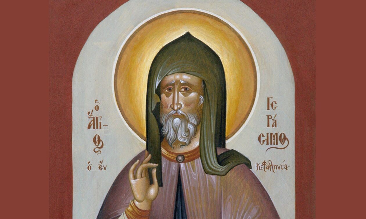 Ο Άγιος Γεράσιμος, γόνος της αριστοκρατικής Οικογενείας των Νοταράδων, γεννήθηκε το 1506 στα Τρίκαλα Κορινθίας. Οι γονείς του ονομάζονταν Δημήτριος και Kαλή. Ο προπάππος του Λουκάς Νοταράς – τελευταίος πρωθυπουργός του Βυζαντίου – ήταν συγγενής εκ μητρός με τον Κωνσταντίνο Παλαιολόγο, το μαρτυρικό Αυτοκράτορα του Βυζαντίου. Αφού έλαβε πλουσιοτάτη παιδεία, περιόδευσε σε όλους τους ιερούς τόπους της Ελλάδας. Πήγε στην Κωνσταντινούπολη και προσκύνησε τους τάφους των προγόνων του. Κατόπιν μετέβη στο Άγιο Όρος και εκάρη Μοναχός όπου και σώζεται το σπήλαιο της ασκήσεώς του στην έρημο της Καψάλας (κελλίον Μεγάλου Βασιλείου).