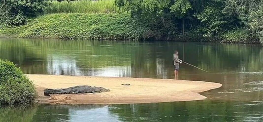 Ένας Βρετανός τουρίστας κατέγραψε με το κινητό του έναν Αυστραλό να ψαρεύει την ώρα που ένας μεγάλος κροκόδειλος βρισκόταν πίσω του, μάλιστα μεγαλύτερος από τον ίδιο.