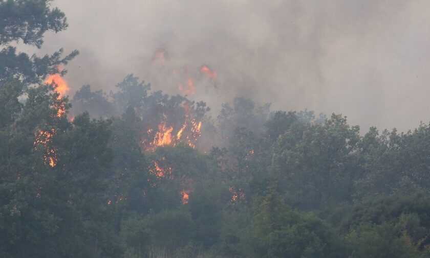Με ταχύτατους ρυθμούς εξαπλώνεται η φωτιά που ξέσπασε στον Μίσχο Ροδόπης, καθώς οι φλόγες έχουν μπει στον οικισμό Σώστης όπου καίει τα πρώτα σπίτια.