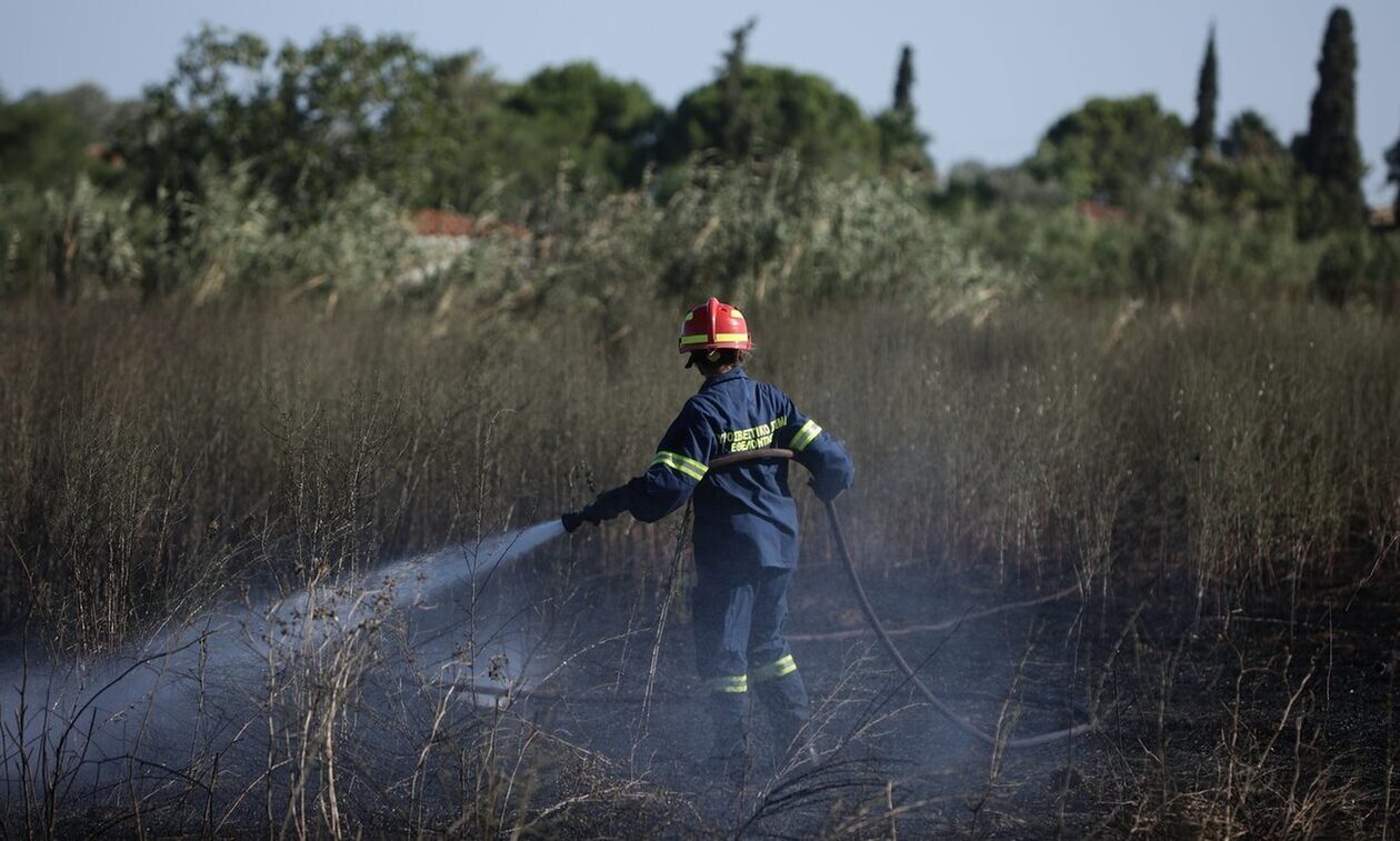 Καίγεται έκταση με ξερά χόρτα.