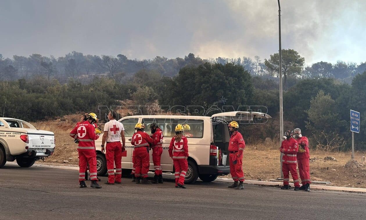 Φωτιά στη Φυλή: Με άρτιο εξοπλισμό κλιμάκιο του Ελληνικού Ερυθρού Σταυρού βρίσκεται στο πύρινο μέτωπο για να παρέχει κάθε δυνατή βοήθεια τόσο στους πολίτες όσο και σε όσους επιχειρούν.