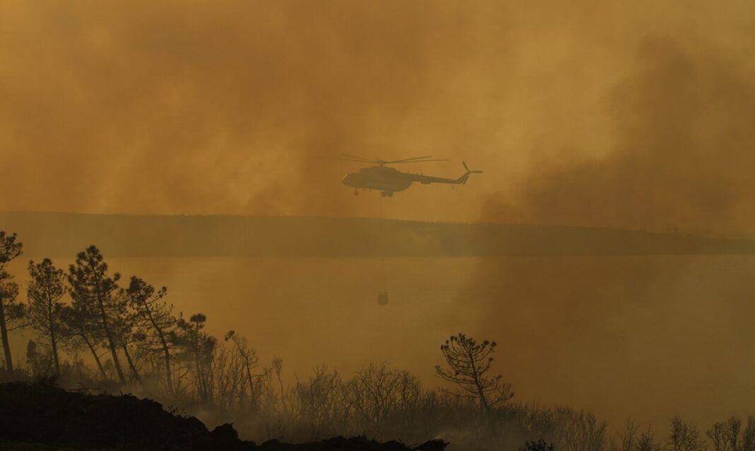 Εικόνες που μεταδίδουν τουρκικά μέσα ενημέρωσης δείχνουν φλόγες να πλησιάζουν αστικές περιοχές με γκρίζους και πορτοκαλί καπνούς να καλύπτουν τον ουρανό