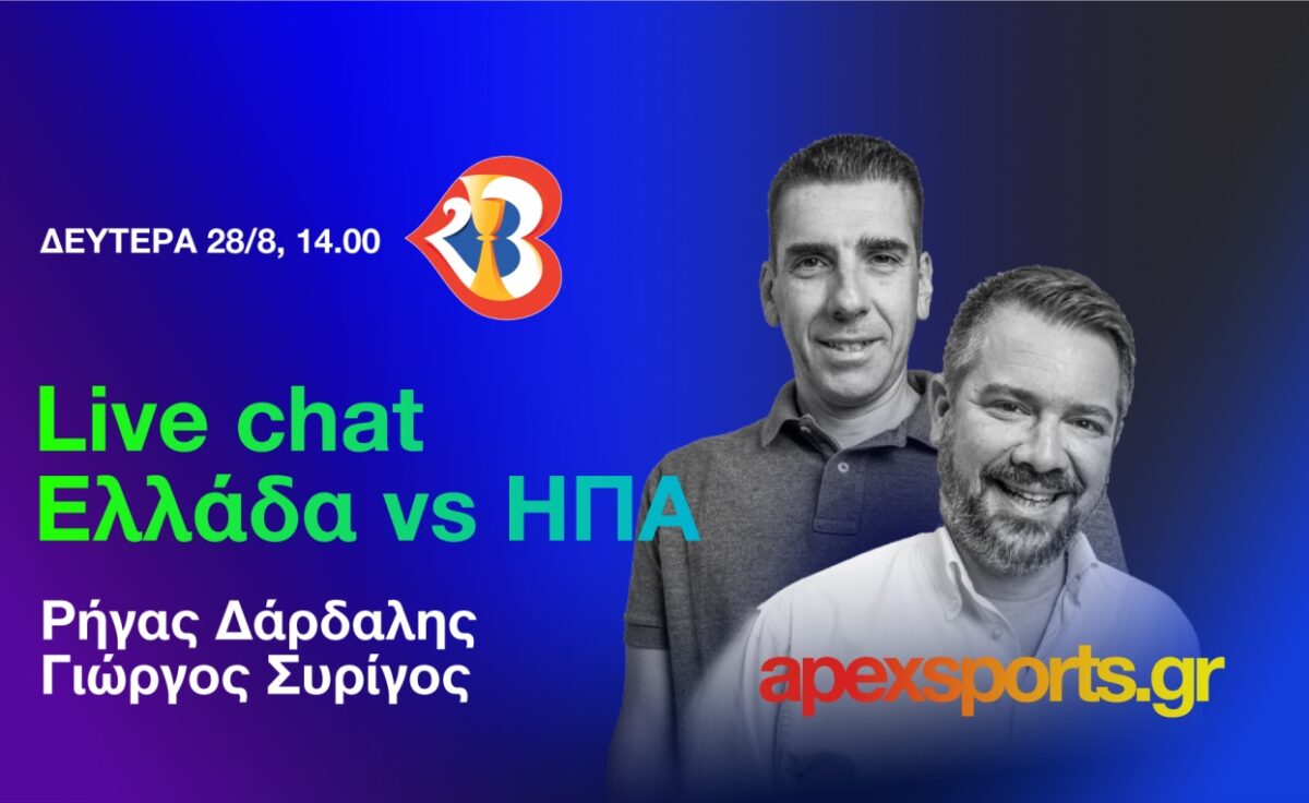 Γιώργος Συρίγος και Ρήγας Δάρδαλης σας περιμένουν στο live chat του apexsports.gr ενόψει του ματς της Εθνικής μας με τις ΗΠΑ για το Παγκόσμιο Κύπελλο. Περίπου δύο ώρες πριν το crash test της Ελλάδας με τους Αμερικανούς (15:40), ο Γιώργος Συρίγος και ο Ρήγας Δάρδαλης απαντούν στις ερωτήσεις σας για την παρουσία της «επίσημης αγαπημένης» …