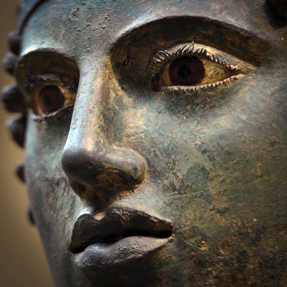 Τα μάτια του Ηνίοχου μοιάζουν ζωντανά. Ίσως, κανένα άλλο άγαλμα δεν δίνει αυτή τη μοναδική αίσθηση.