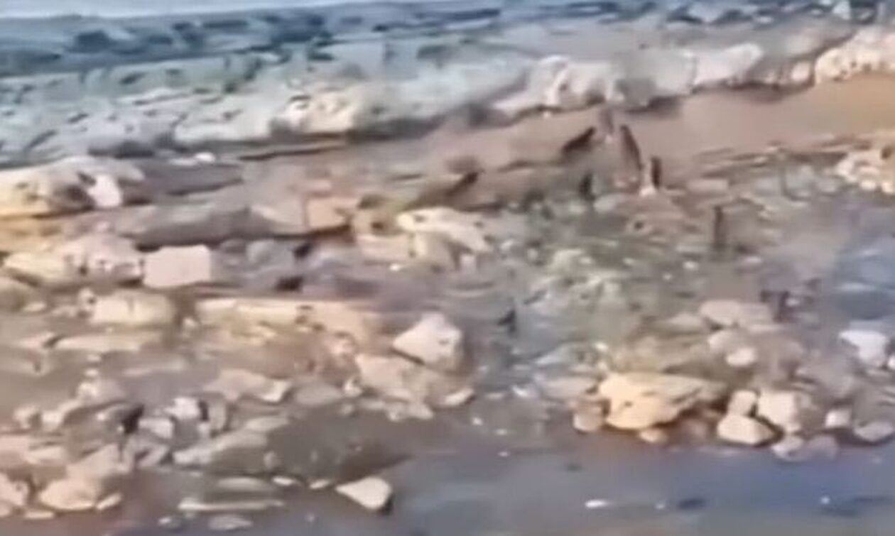 Το βίντεο με τη λεζάντα «Κακή μέρα για ένα αγόρι στη Μαχατσκάλα» δείχνει το παιδί να τρέχει σε μια παραλία καθώς μια αγέλη αδέσποτων το κυνηγά.