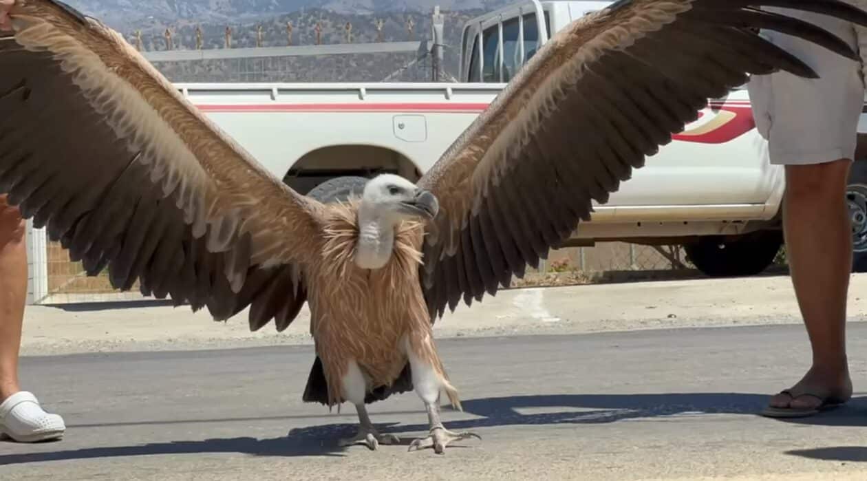 Σε ημιθανή κατάσταση βρέθηκε ένα τεράστιο όρνεο να κάθεται επάνω σε θερμοκήπιο στον Κόκκινο Πύργο Μεσσαράς, όπως αναφέρει το cretalive.
