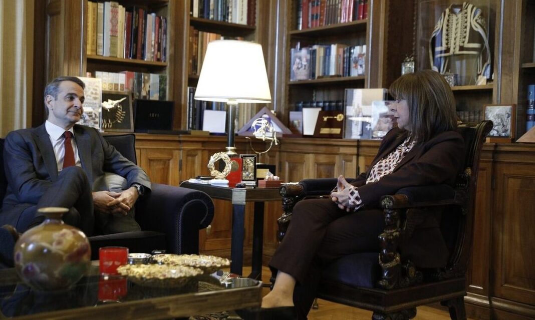Ο πρωθυπουργός Κυριάκος Μητσοτάκης είχε συνάντηση με την Πρόεδρο της Δημοκρατίας Κατερίνα Σακελλαροπούλου στο Προεδρικό Μέγαρο, στο πλαίσιο των τακτικών μηνιαίων ενημερώσεων.