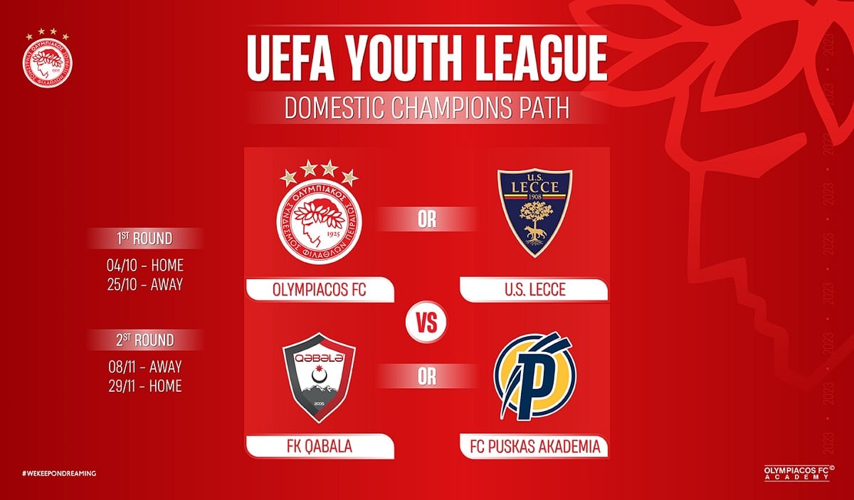 UEFA Youth League: Αντιμέτωποι με τη Λέτσε οι Νέοι του Ολυμπιακού