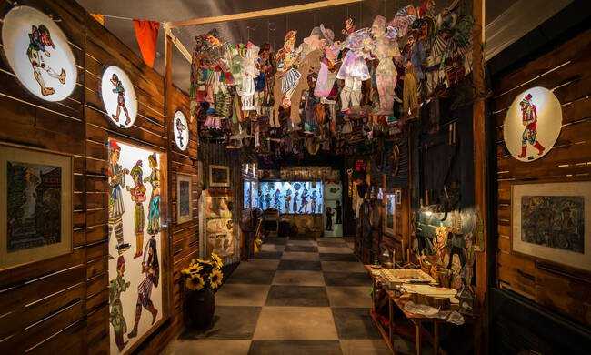 Σε έναν ειδικά διαμορφωμένο χώρο 300 τ.μ. ζωντανεύουν τρισδιάστατα τοεσωτερικό του σπιτιού του Καραγκιόζη και η ιστορία του θεάτρου σκιών, από τη γέννησή του ως τις μέρες μας.