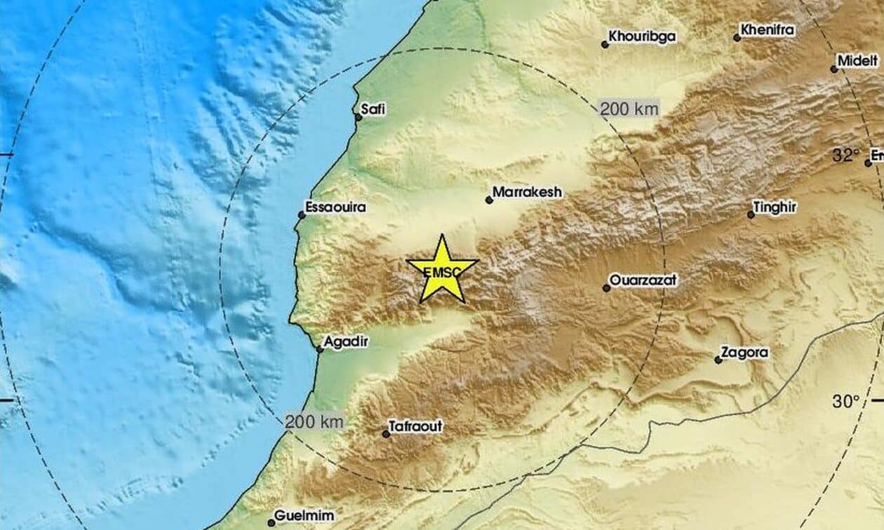 Σεισμική δόνηση μεγέθους 6,9 βαθμών σημειώθηκε πριν από λίγο στο νοτιοδυτικό Μαρόκο, σύμφωνα με το Ευρωμεσογειακό Σεισμολογικό Κέντρο (EMSC).