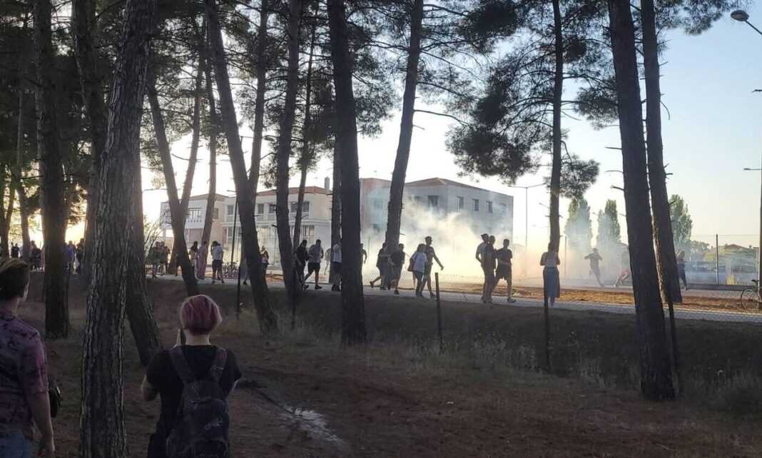 Ισχυρές αστυνομικές δυνάμεις επιχείρησαν να απομακρύνουν τα άτομα, το πλήθος απάντησε με συνθήματα, άναψε φωτιά σε κάδους, ενώ έγινε χρήση καπνογόνων και χειροβομβίδων κρότου – λάμψης.