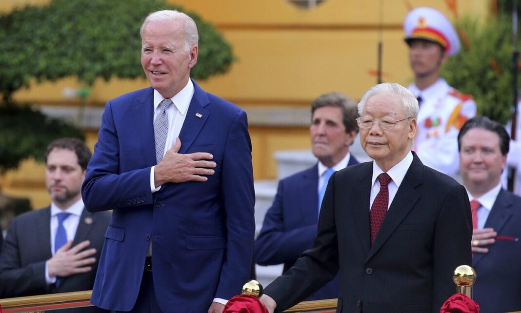Ο Αμερικανός πρόεδρος Τζο Μπάιντεν δήλωσε σήμερα πως οι σχέσεις της χώρας του με το Βιετνάμ «εισήλθαν σε νέο στάδιο». Μιλώντας σε επιχειρηματικό φόρουμ στη διάρκεια επίσημης επίσκεψής του στη χώρα αυτή της νότιας Ασίας, ο Μπάιντεν δήλωσε πως οι δύο χώρες εμβαθύνουν τη συνεργασία τους στο υπολογιστικό νέφος (cloud computing), τους ημιαγωγους και την τεχνητή νοημοσύνη.