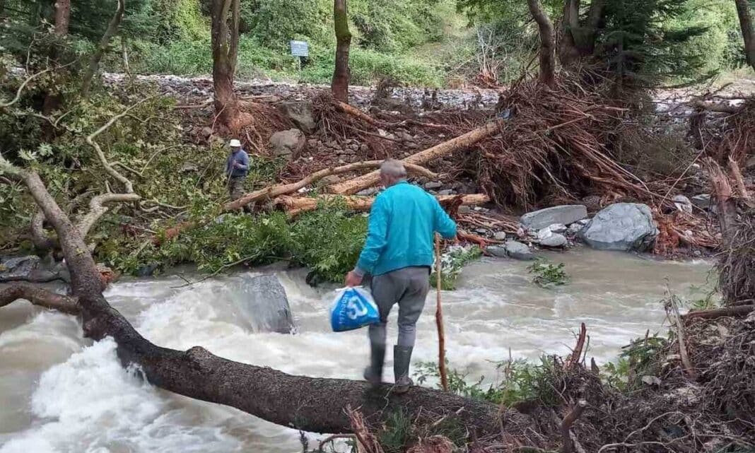 Κακοκαιρία Daniel: Ο άνδρας πέρασε το ποτάμι πάνω σε έναν κορμό δέντρου για να μπορέσει να φτάσει σε γειτονικό χωριό για να φιλοξενηθεί