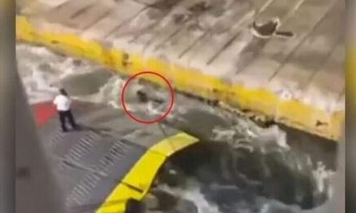 Στη συνέχεια, ο αυτόπτης μάρτυρας ανέφερε πως με το που ξεκίνησε το πλοίο σιγά- σιγά να φεύγει και ενώ ο καταπέλτης ήταν κατεβασμένος, ο άνδρας πάτησε τα πόδια του επάνω ώστε να μπει στο πλοίο.