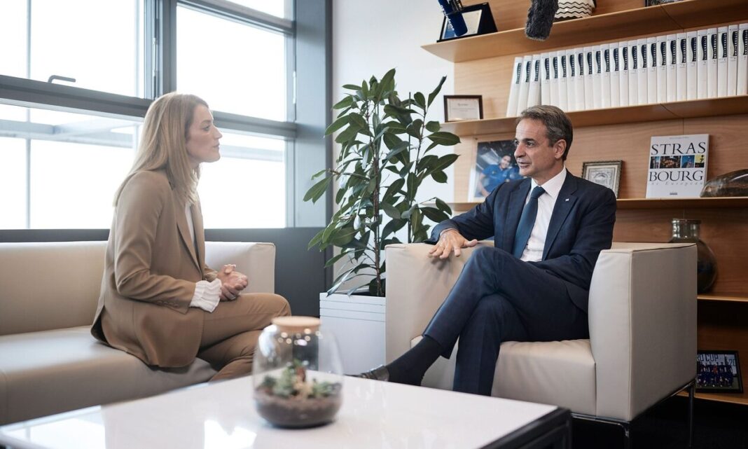 Ο πρωθυπουργός Κυριάκος Μητσοτάκης συναντήθηκε στο Στρασβούργο με την Πρόεδρο του Ευρωπαϊκού Κοινοβουλίου, Ρομπέρτα Μετσόλα στο πλαίσιο των επαφών που έχει με κορυφαίους αξιωματούχους των ευρωπαϊκών θεσμών για τη στήριξη της χώρας μας στην αντιμετώπιση των επιπτώσεων των πρόσφατων φυσικών καταστροφών.