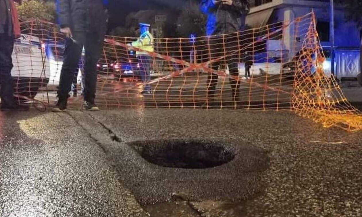 Συγκεκριμένα η κυκλοφορία έχει διακοπεί λόγω της καθίζησης και είναι άγνωστο πότε θα ανοίξει ξανά ο δρόμος.