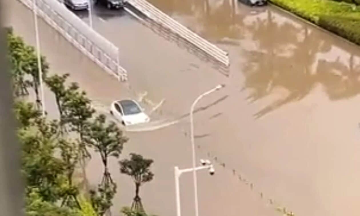Δεν είναι λίγοι οι οδηγοί των Tesla που αψηφούν τους πλημμυρισμένους δρόμους και τους διασχίζουν σαν να μη τρέχει τίποτα.