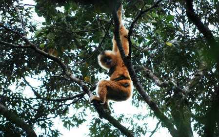 Ένας γίββωνας, είδος πιθήκου, έχει όρεξη για παιχνίδια και δεν αφήνει σε ησυχία μια νεαρή τίγρη