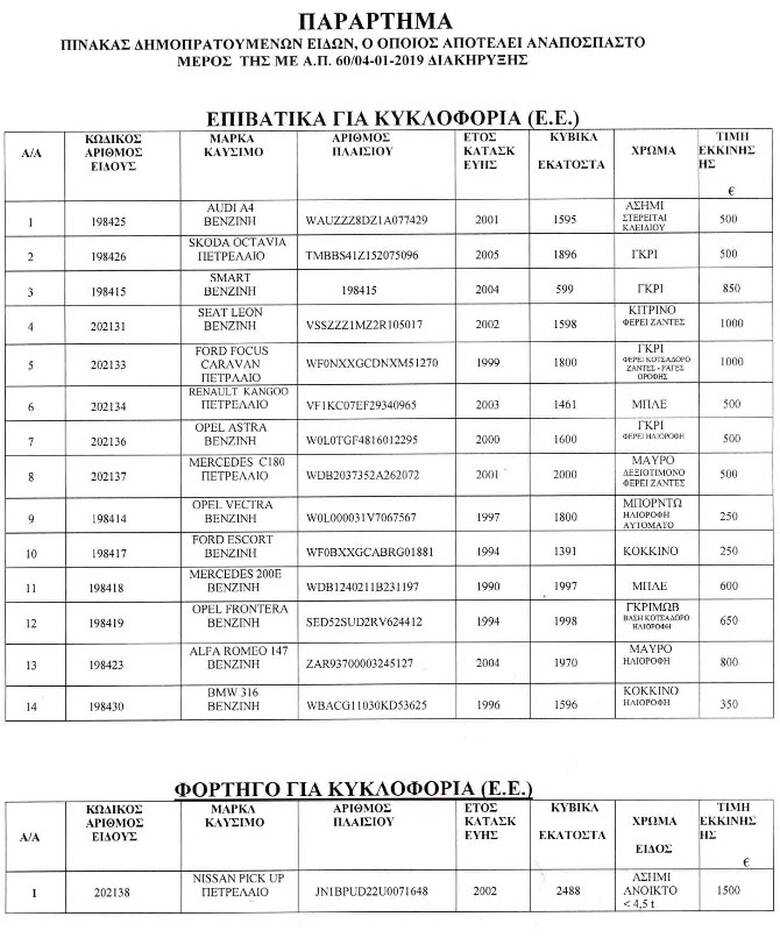 Δημοπρασίες: Στην Ηγουμενίτσα θα πραγματοποιηθεί σήμερα, Τετάρτη 16 Ιανουαρίου δημοπρασία οχημάτων – Δείτε αναλυτικά τη λίστα και επιλέξτε τι σας συμφέρει