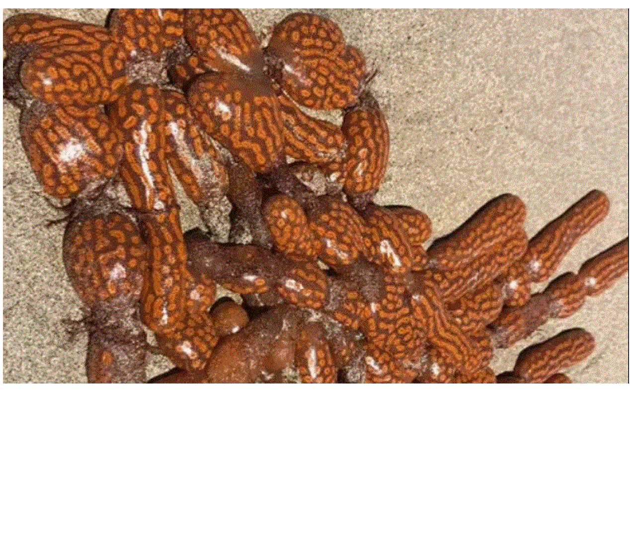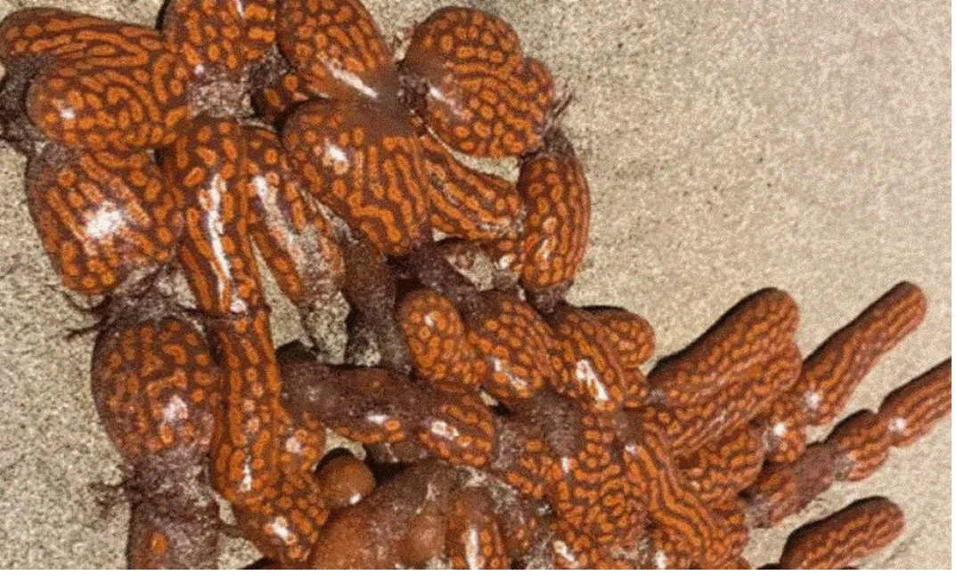 Στην εικόνα, η φιγούρα που μοιάζει με ζελέ φαίνεται να είναι διπλωμένη μόνη της και έχει ένα γλοιώδες, γυαλιστερό εξωτερικό. Ένας θαλάσσιος οικολόγος, είπε ότι το περίεργο πλάσμα ανήκει στην κατηγορία των ασκιδιοειδών που συναντώνται συχνά σε παράκτιες περιοχές.