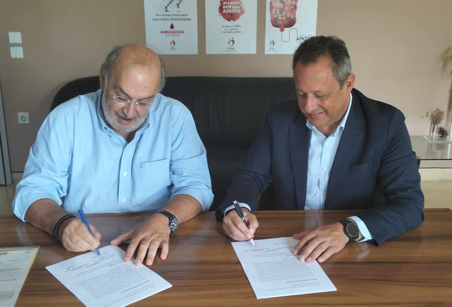 Ολοκληρώθηκε ο διαγωνισμός για τον ορολογικό έλεγχο των δειγμάτων αίματος από το Εθνικό Κέντρο Αιμοδοσίας με την υπογραφή της συμβάσεως μεταξύ Παναγιώτη Κατσίβελα, Προέδρου του Δ.Σ. του Ε.ΚΕ.Α. και Ιωάννη Βρεττού, Διευθύνοντα Συμβούλου της Abbott Laboratories Ελλάς.