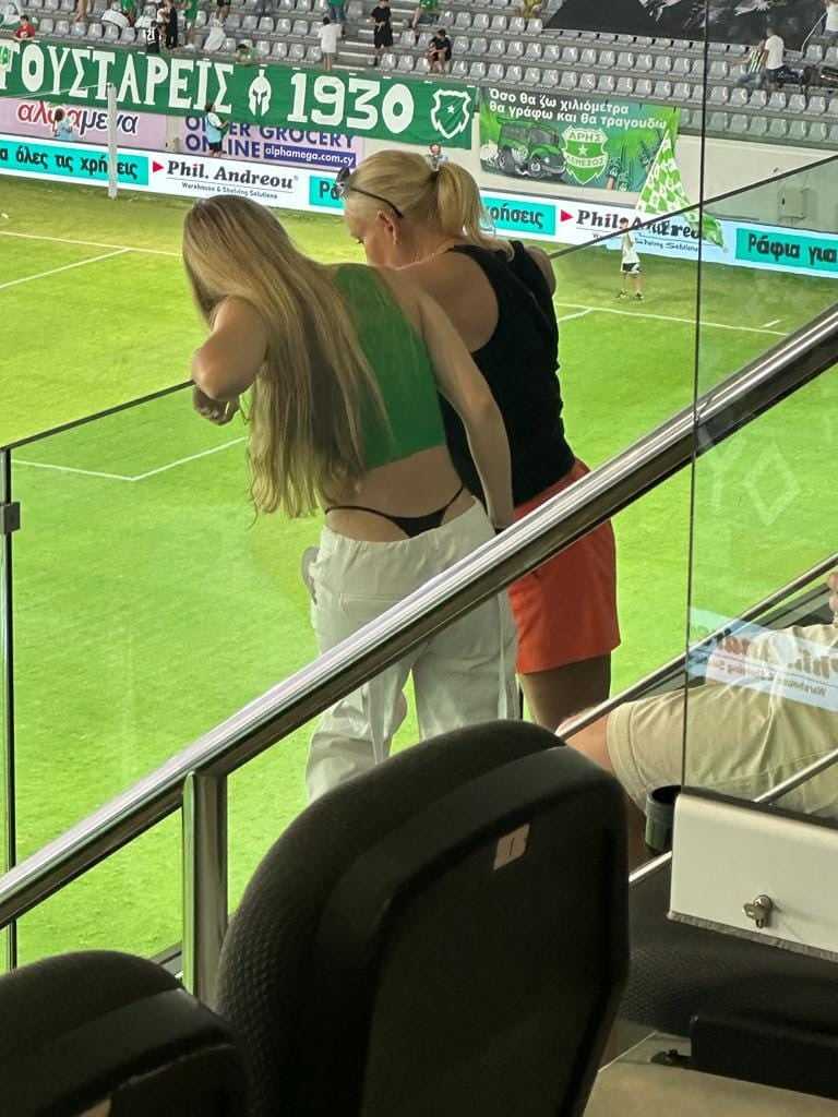 Αυτή την φορά όμως, στο πρόσφατα παιχνίδι του Άρη Λεμεσού στην Κύπρου, η κάμερα δεν «έπιασε» την εντυπωσιακή ξανθιά στην εξέδρα, η οποία ήταν απρόσεκτη και αποκαλυπτική. Χρειάστηκε μία φωτογραφία άλλου φιλάθλου που καθόταν κάποιες σειρές πίσω της και φυσικά τα social media για να γίνει vrial μέσα σε λίγες ώρες.