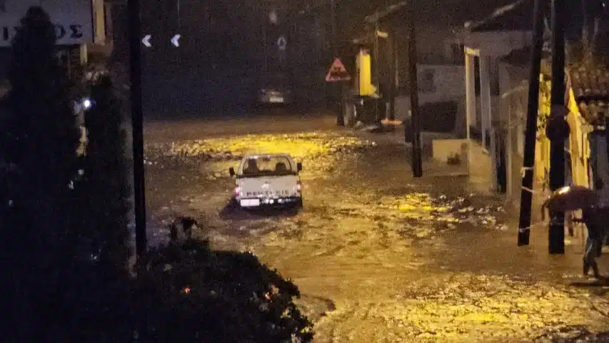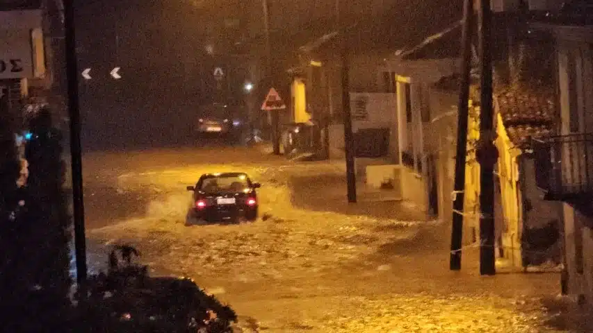 Τρίκαλα: Δρόμος μετατράπηκε σε «ποτάμι» μέσα σε μία ώρα από την καταρρακτώδη βροχή